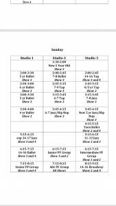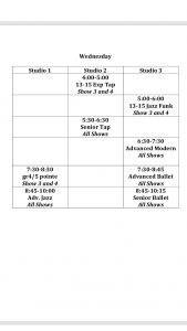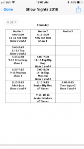 Attached are the lists for which shows each class dances in. Remember