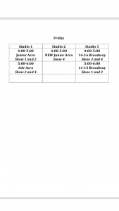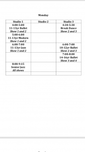 Here is the full list of rehearsals and locations. If you have any questions please ask your child’s teacher or email us at info@coastal dance company.com 🙂